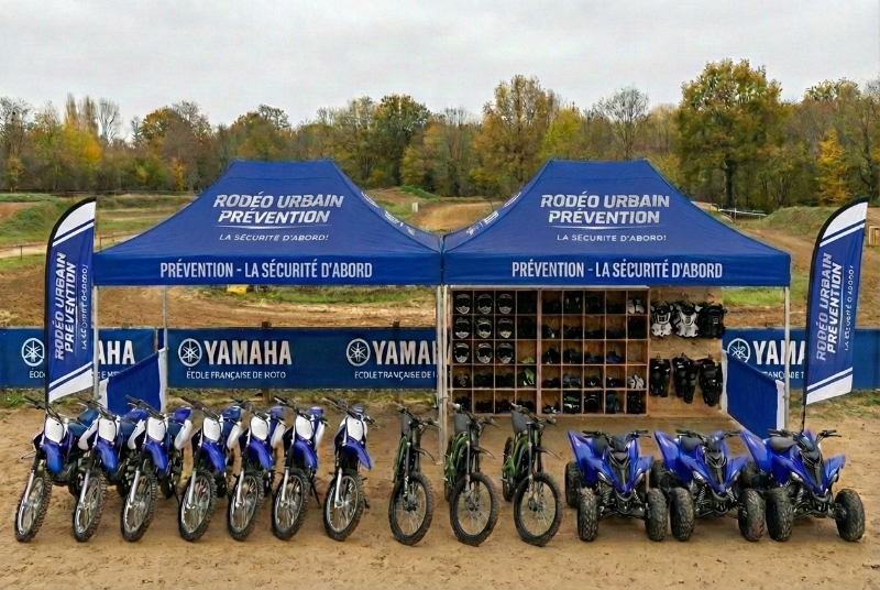 Rodeo Urbain Prévention s’appuie sur des motos et quads thermiques et électriques, choisis pour leur fiabilité, leur puissance maîtrisée et leur sécurité.